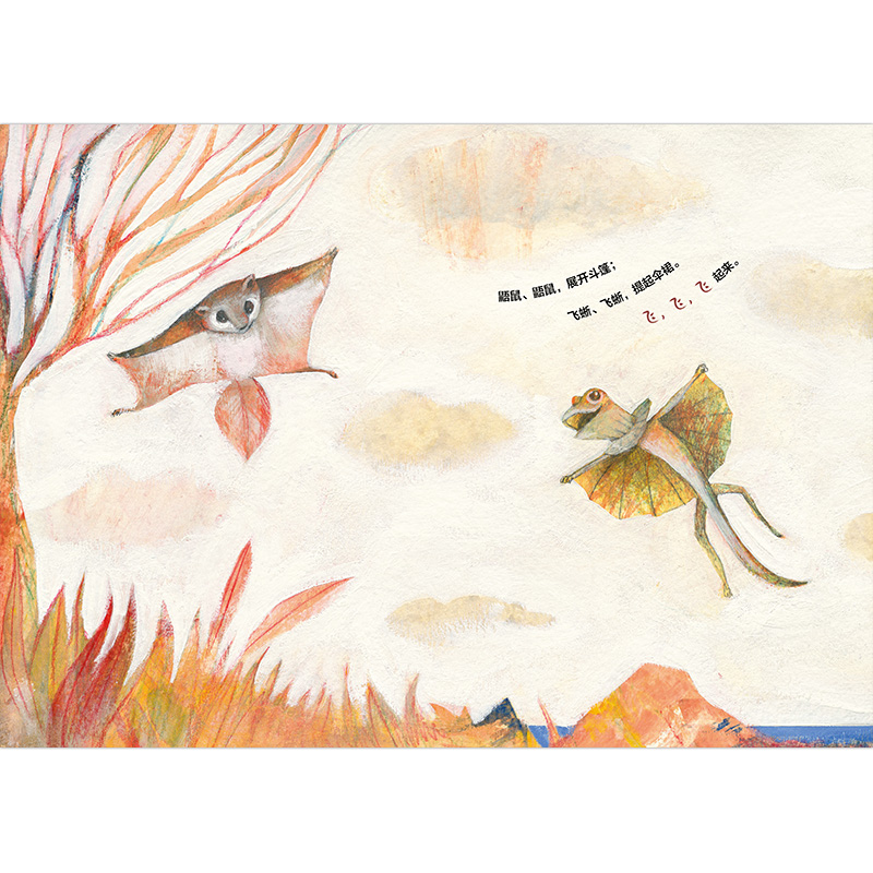 这是一本兼具认知功能和极高艺术性的图画书,以“飞”为线索,展现了各种飞翔的事物。苍蝇、瓢虫、蝴蝶、蝙蝠……都在奋力地飞,不仅动物们在飞,人类社会中的风筝、飞机、热气球也在飞。书中每个事物都渴望飞翔,也有各自飞翔的方式和姿态,传达出一种对自由的渴望和向上的生命形态。本书语言简洁且富有韵律感,图画充满童趣,在帮助儿童学习语言、认识各种事物的同时,也让他们感受到阅读的快乐、生命的愉悦。