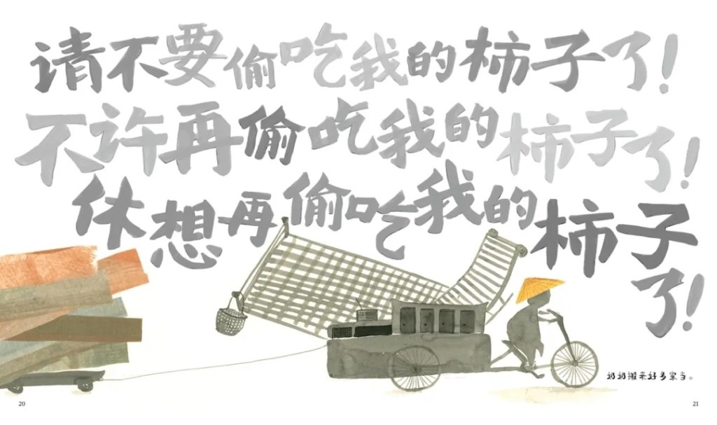 At the end of the story, Grandma decided to offer a kind gesture, leaving all the remaining persimmons to these uninvited guests. She felt happy again. This book is illustrated with creative ink superimposed textures such as clothes, wool, paper cuts etc., combining traditional techniques with modern craftsmanship.