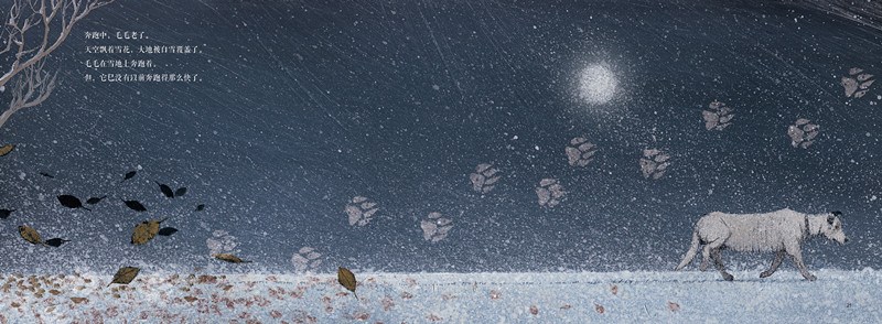 讲述了一只叫毛毛的狗不停地奔跑在两位主人之间的故事。 年幼的毛毛被一对新婚夫妇收养,它和他们度过了美好的时光。 后来,夫妇分开了,住在两个相距遥远的城市。两人都深爱着毛毛,毛毛也离不开他们中的任何一个。于是,毛毛开始了它没完没了的奔跑。一年四季,不分春夏秋冬,阴天雨雪,奔跑在两座城市之间。途中总要路过一片梨园,花开了……花落了……奔跑中,它老了……