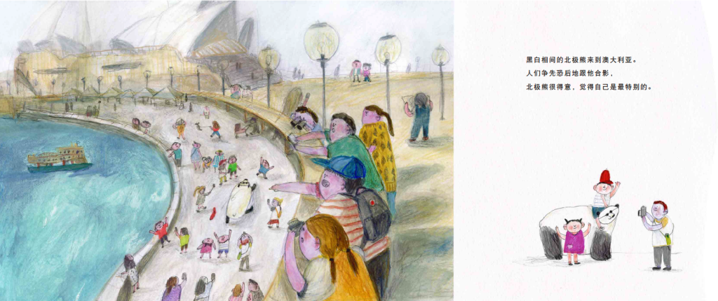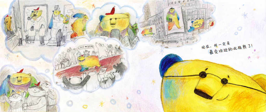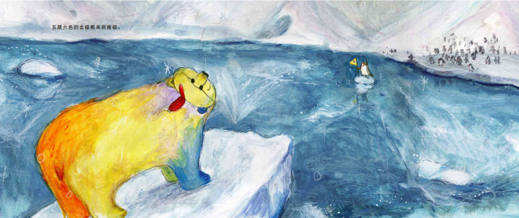 Polar bear wants so badly to make friends with the penguin! On his way to the penguin, he met a brown bear, a panda, and colorful gummy bears, and painted all the colors he thought were beautiful on his body. Surely the penguin will love this most special polar bear, right?