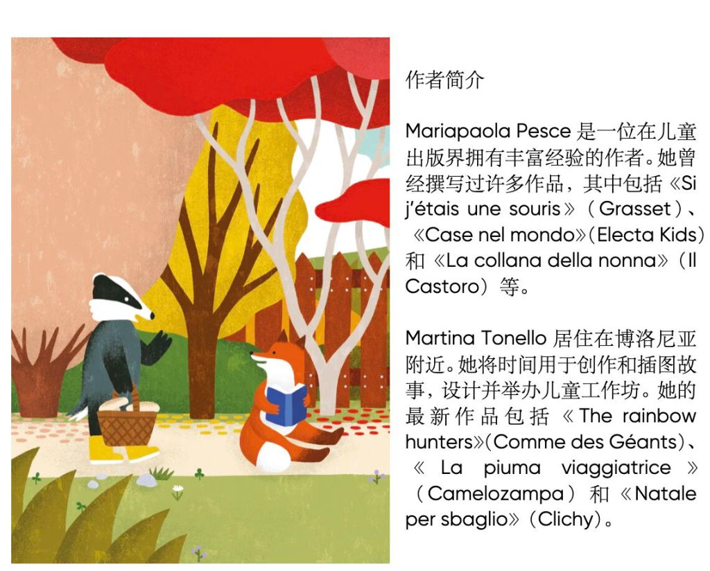由玛丽亚·贾诺拉创作并绘制插图,通过四个简短的小故事展现动物主角们如何过上一种充满善意、接纳他人差异、细细品味生活并珍惜每个瞬间的生活。