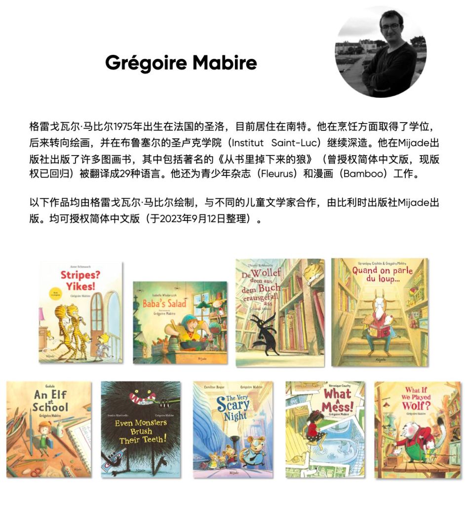 《小斑马扎克的条纹衣》《巴巴女巫的沙拉》《书里掉下来一只狼》《狼的故事》《学校来了个小精灵》《怪物也刷牙!》《床上的怪物,床下的怪物》《一团糟》《狼真的来了》